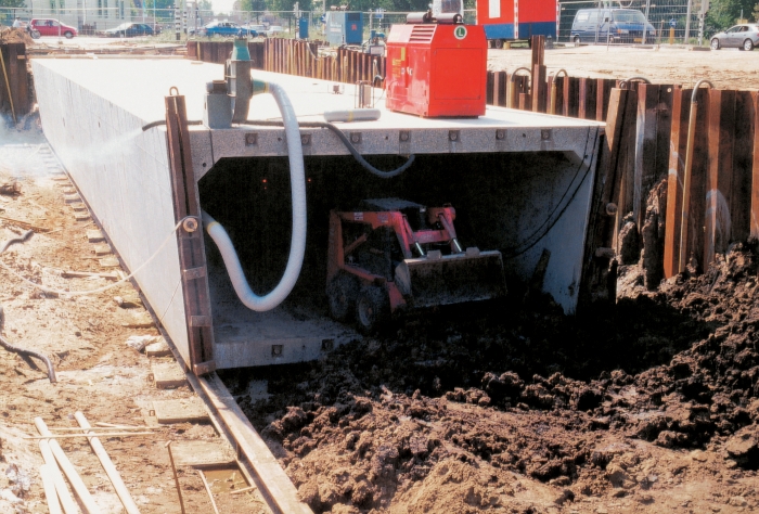 De trekmethode is door ons voor het eerst in 1976 toegepast bij een veetunnel met afmetingen van 1.50x1.75 m in een tertiaire weg te Vries in Drenthe, onder directievoering van de Grontmij te Assen.